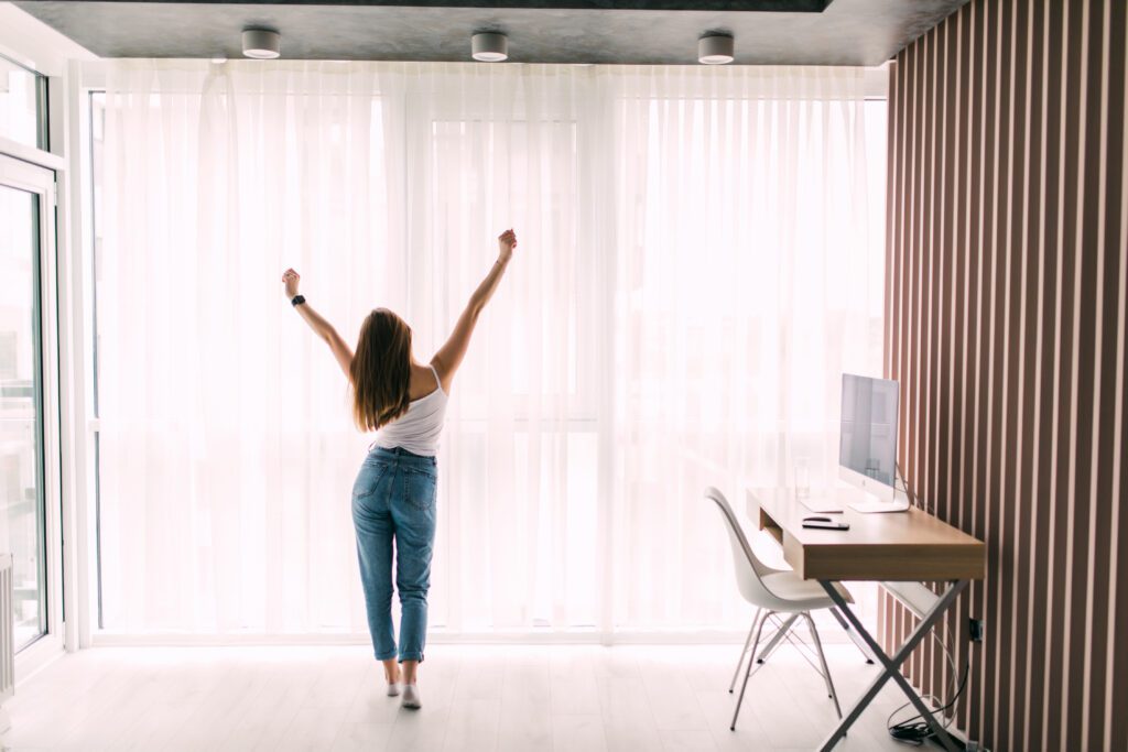 A expansão do trabalho remoto mudou os critérios de valorização de um cômodo. O ofuscamento de telas de computador — aquele brilho lateral que obriga a inclinar o monitor — é causado pela entrada direta de luz solar não filtrada. A persiana romana e a persiana horizontal de madeira resolvem isso com controle angular: as lâminas direcionam os feixes de luz para o teto, em vez de projetá-los diretamente sobre superfícies de trabalho.